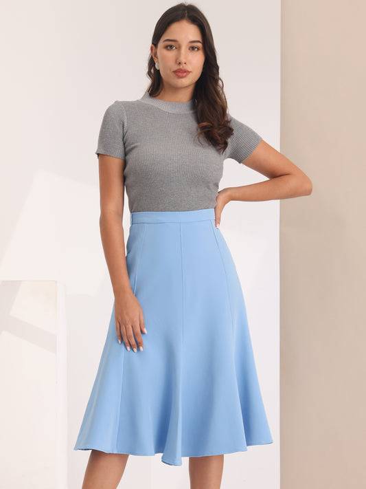 Women Side Zipper High Waist Elegant Flared Flowy A Line Work Midi Skirt