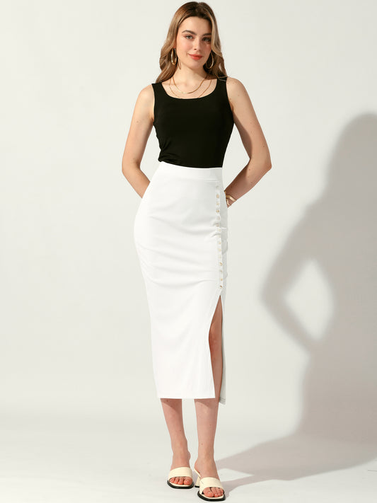 Women's Pencil Basic Skirt Midi Casual Side Split Slit Ribbed Knit Bodycon Skirts