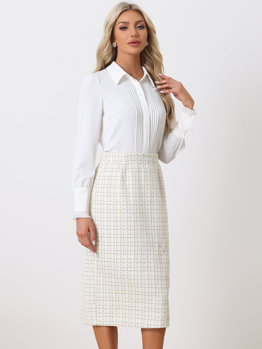 Women's Plaid Tweed High Waist Work Office Bodycon Pencil Skirt