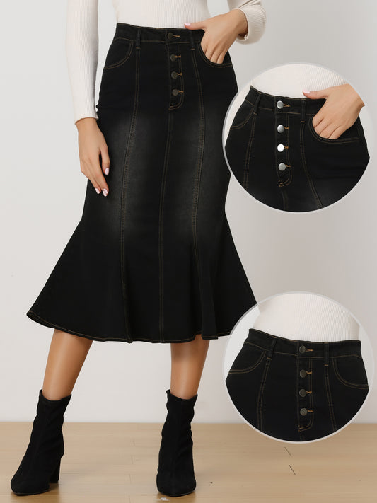 Women's Fishtail Denim Skirt Slim Fit Midi Skirts