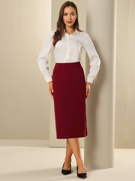 Women's Pencil Skirt High Waist Split Back Work Midi Skirts