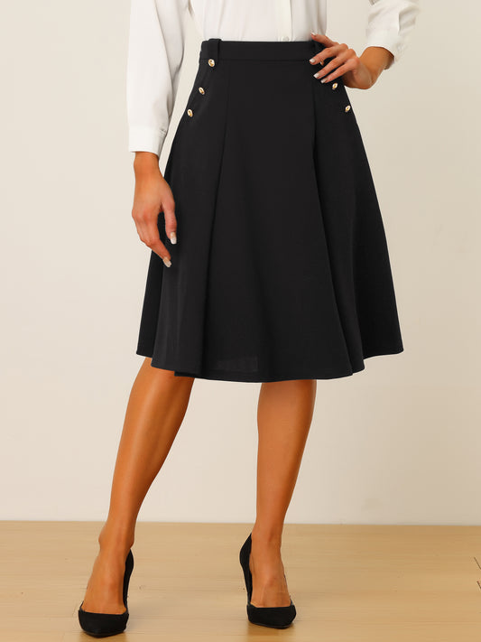Women's High Waist Work Office Pleated Flared Elegant Midi Skirt (Available in Plus Size)