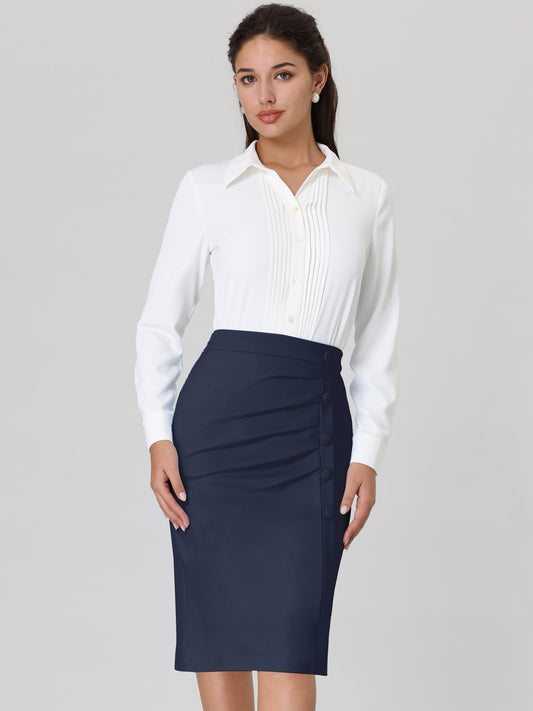 Women's Wear to Work Pencil Skirt Elastic High Waist Ruched Bodycon Midi Skirts