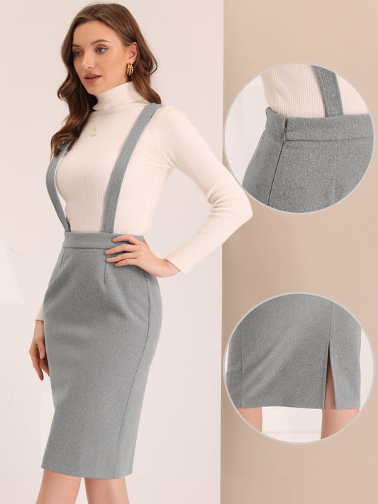 Women's Pencil Skirt High Waist Adjustable Strap Split Back Bodycon Suspender Skirts
