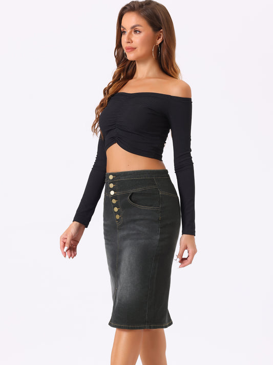 Women's Jean Skirts Split Casual High Waist Bodycon Denim Pencil Skirt