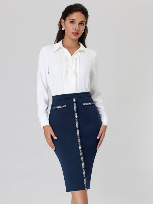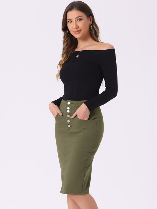 Women's Bodycon Pencil Skirt High Waist Stretchy Knee Length Office Work Skirts