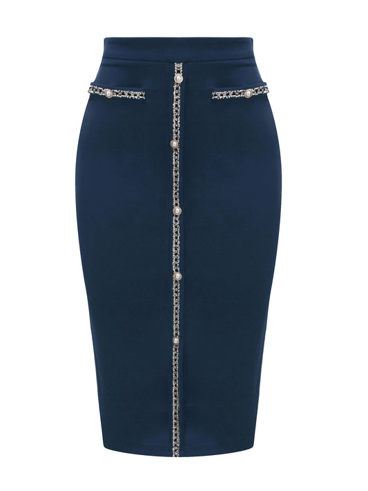 Women's Rhinestone Fringe Trim Bodycon Skirt High Waisted Asymmetrical Hem Party Skirt
