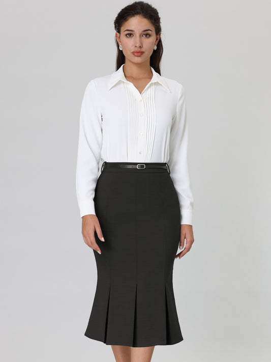 Women's Elegant Formal Skirt with Belt Knee Length Fishtail Pencil Skirt
