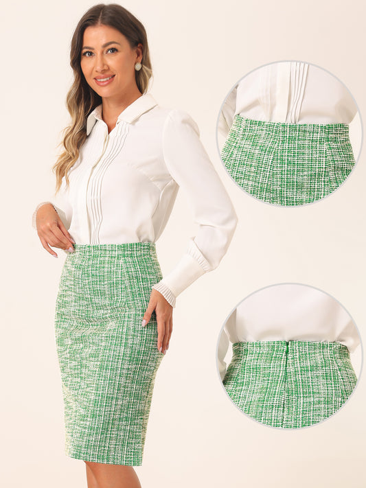 Women's Office Work Tweed High Waist Split Bodycon Plaid Pencil Skirts