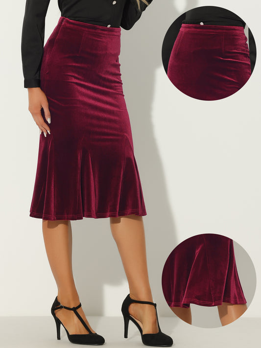 Women's Vintage Elastic Waist Velvet Fishtail Mermaid Bodycon Skirt
