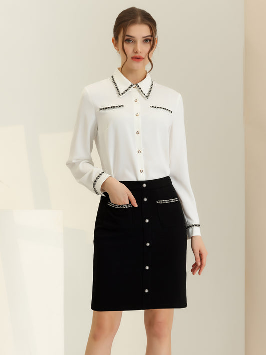 Women High Waist Elegant A-Line Short Skirts Work with Pockets