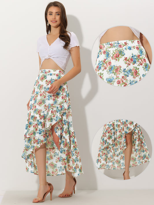 Women's Floral Ruffle Skirt Wrap Tiered Asymmetrical Chiffon Skirt