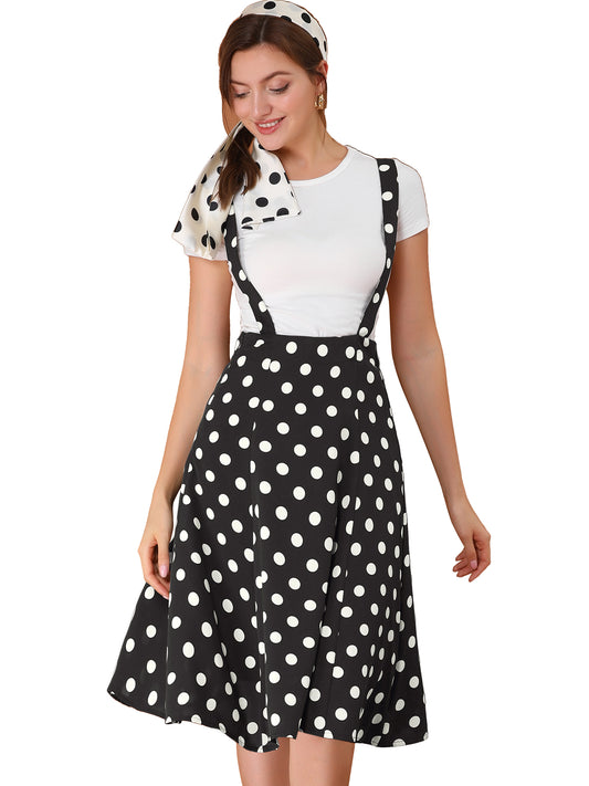 Women's Retro Suspender Skirt 1950s Polka Dots Flowy Midi Skirts