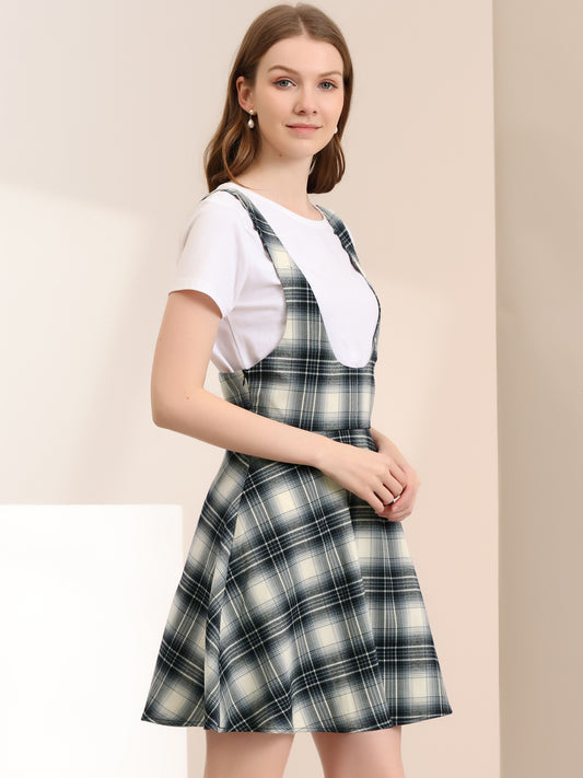 Women's Plaid Overall Dress U Neck Sleeveless Christmas Pinafore Suspender Skirt