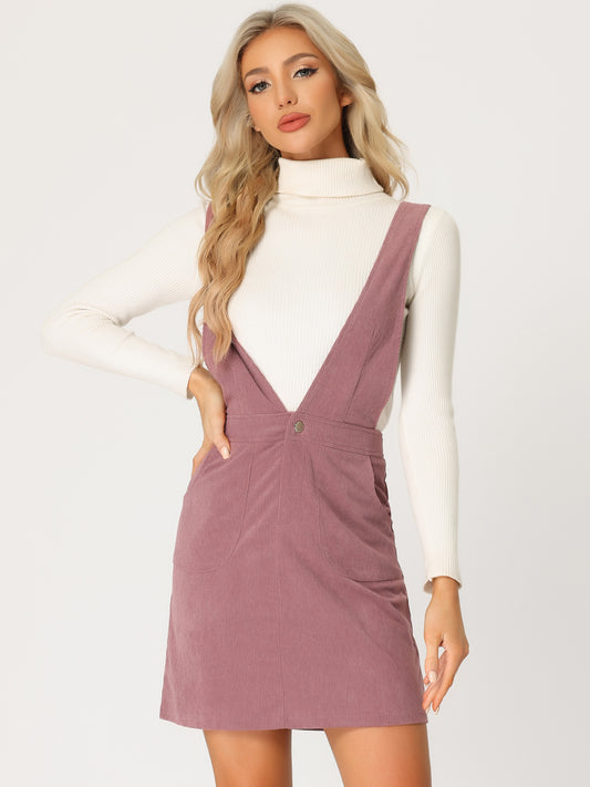Women's Corduroy Overall Pinafore Dress Strap Suspender Skirt