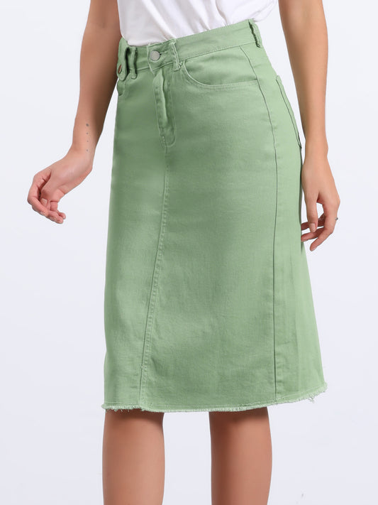 Women's Casual Jean Skirt High Waist Back Slit Stretch Denim Skirt