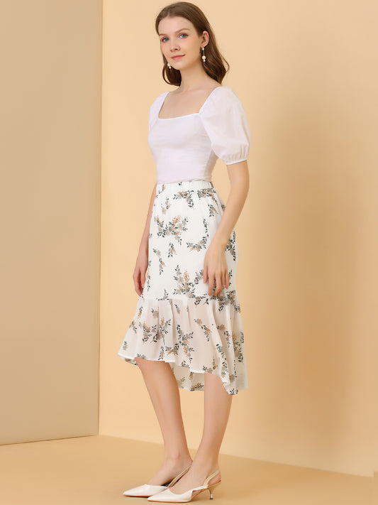 Women's Floral Elastic Waist Bodycon Ruffle Hem Chiffon Fishtail Skirt