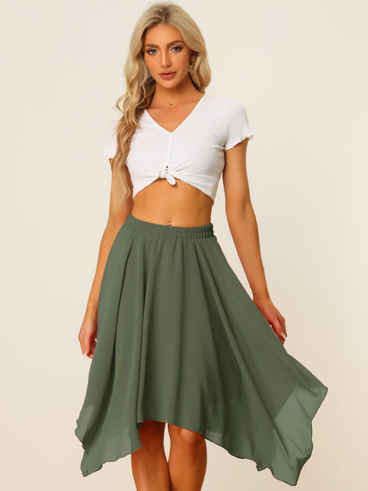 Women's Asymmetrical Hem Elastic Waist Chiffon Flowy Vintage Handkerchief Hemline Midi Skirt