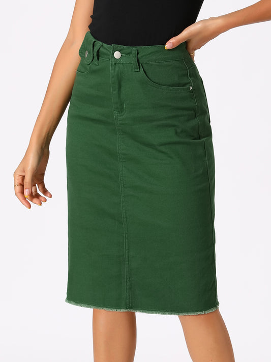 Women's Casual Jean Skirt High Waist Back Slit Stretch Denim Skirt