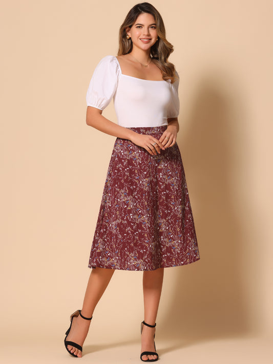 Women's A-Line Midi Skirt Floral Print Chiffon Summer Skirts