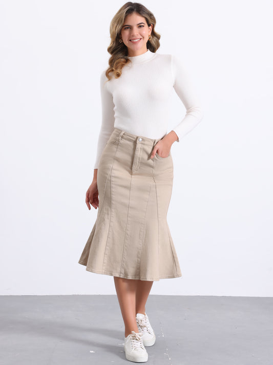 Women's Denim Jean Skirt Midi Bodycon High Waist Ruffle Fishtail Skirt