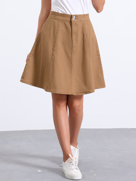 Women's High Waisted A-Line Flared Casual Denim Skirt