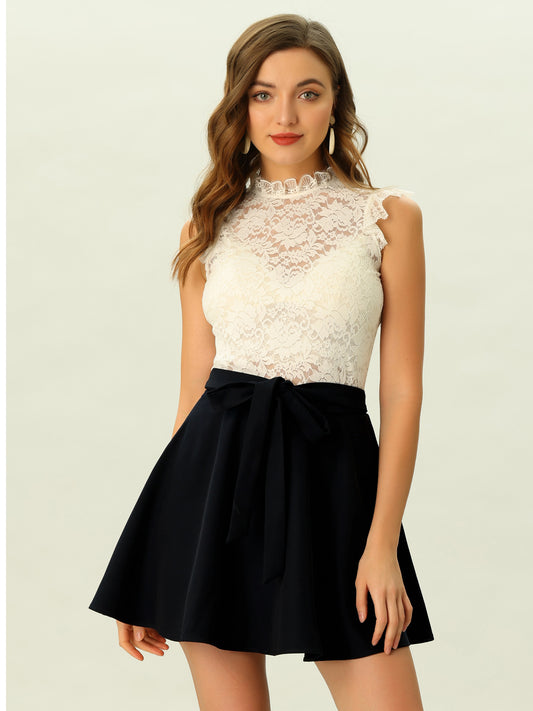 Women's Mini Length Faux Suede Tie Decor Flare Fit A-Line Skirt