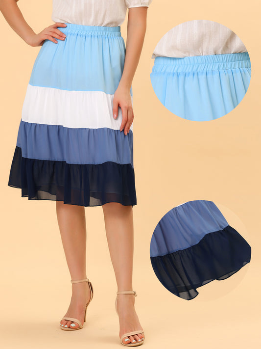Women's Tiered Skirt High Waist Contrast Chiffon Color Block Skirt