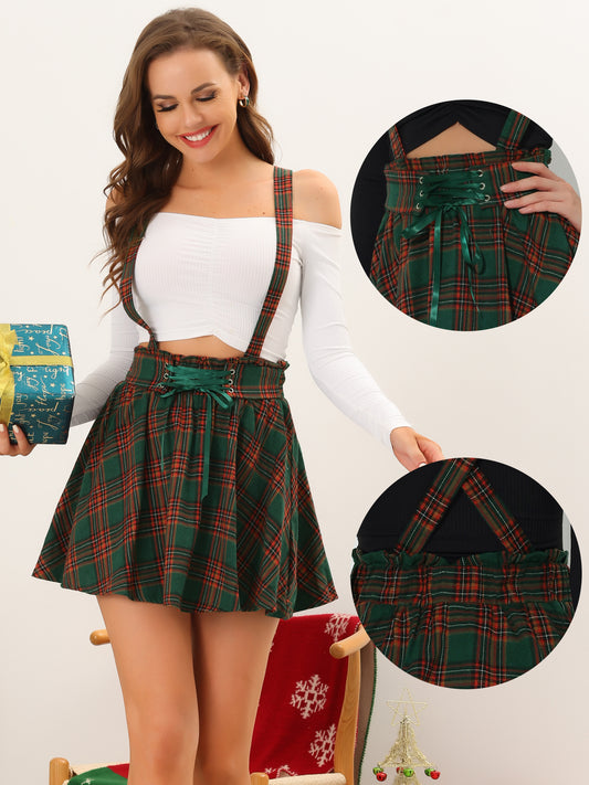 Women's Tartan Skirt Gothic Plaid High Waist Detachable Suspender Skirts