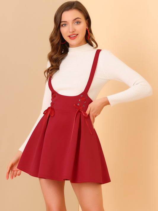 Women's High Waist Brace Skirts A-Line Mini Lace Up Suspender Skirt