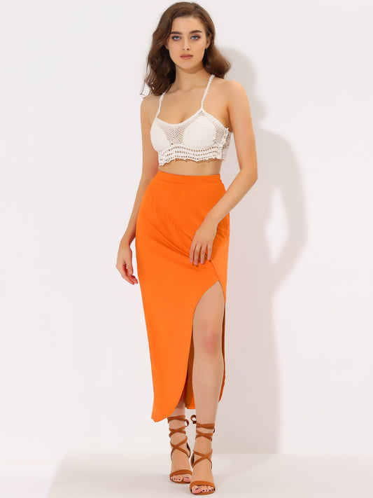Women's Ruched Split High Waist Summer Long Maxi Skirt