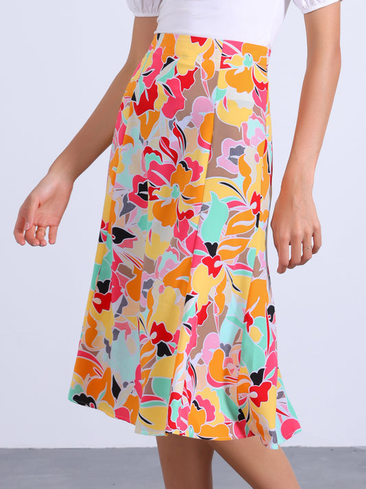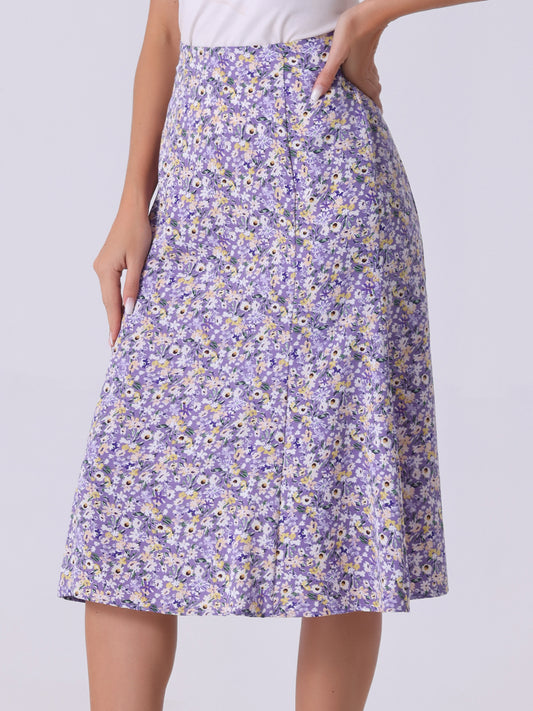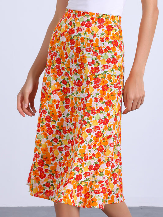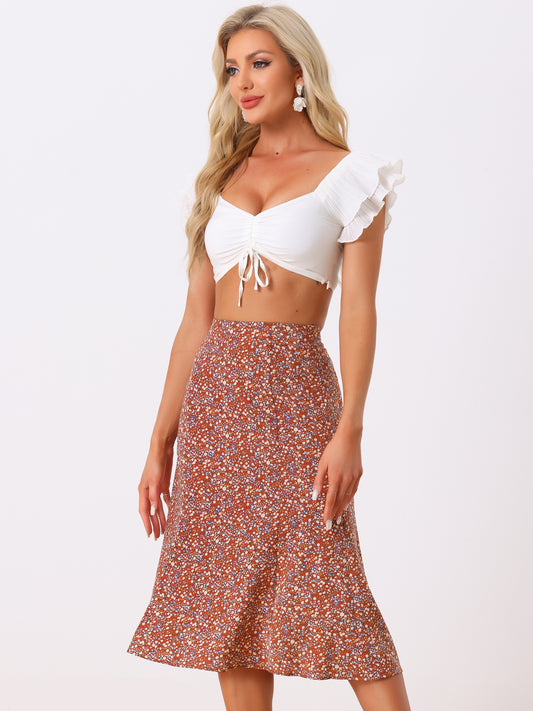 Women's Floral Midi Skirt Peasant Elastic Waist A-Line Ditsy Printed Skirts