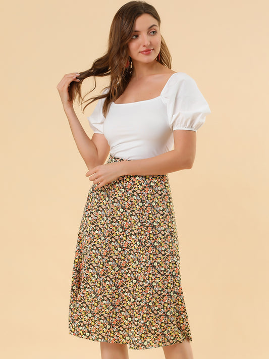 Women's Floral Midi Skirt Peasant Elastic Waist A-Line Ditsy Printed Skirts