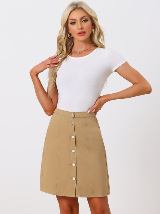 Women's Denim Skirts Summer Casual A-Line Short Button Down Jean Skirt (Available in Plus Size)