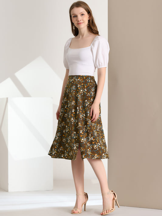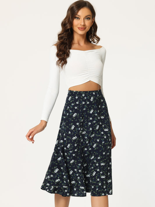 Women's Floral Midi Skirt Peasant Elastic Waist A-Line Ditsy Printed Skirts