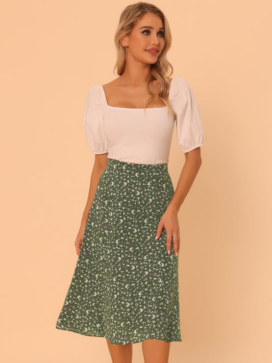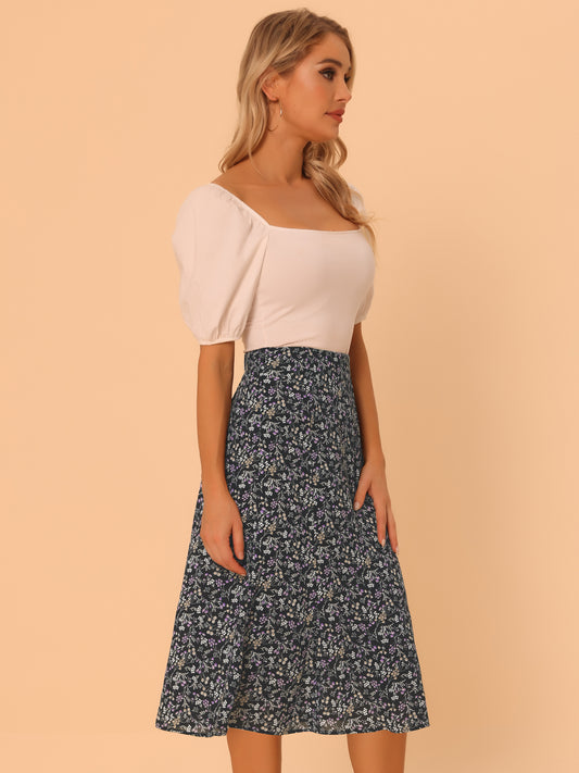 Women's Floral Midi Skirt Peasant Elastic Waist A-Line Ditsy Printed Skirts