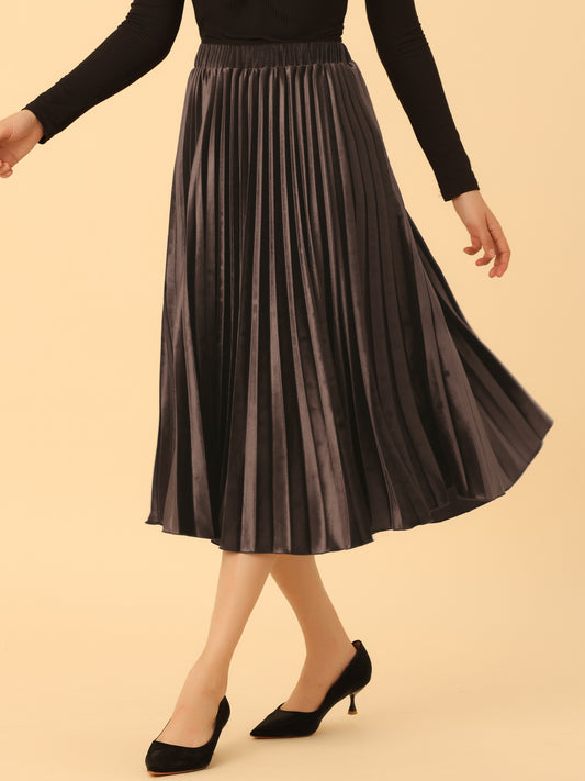 Women's Fall Winter Elastic High Waist Flowy Swing Holiday Velvet Pleated Midi Skirt