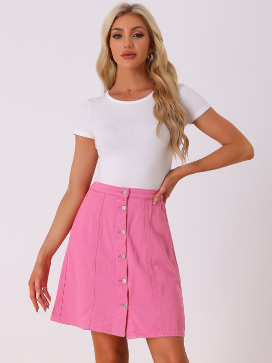 Women's Denim Skirts Summer Casual A-Line Short Button Down Jean Skirt