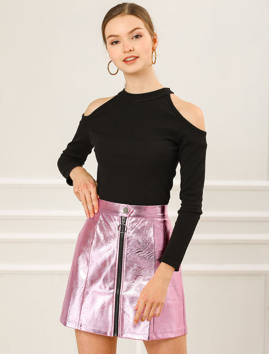 Women's Mini Skirt Shiny High Waist Zipper Short Skirt Partywear