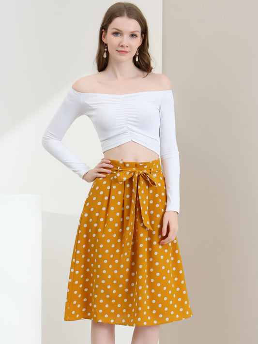 Women's Retro Belted Elastic High Waist A-Line Printed Midi Skirt