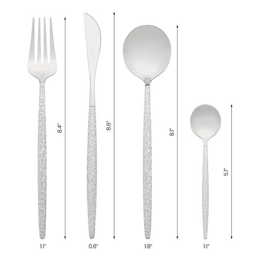 4 Pieces Silverware Set, Stainless Steel Flatware with Knife Cutlery Set