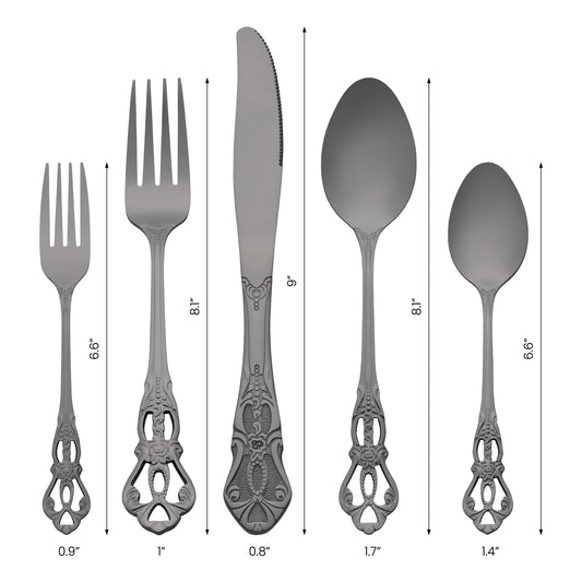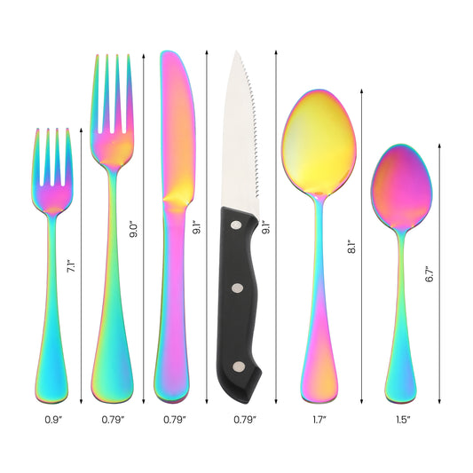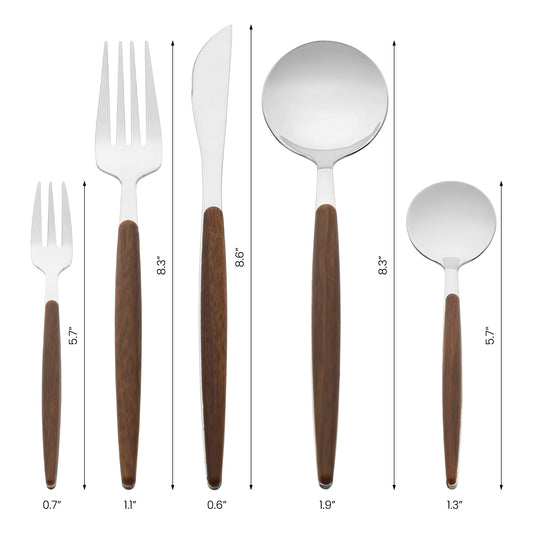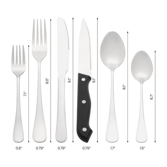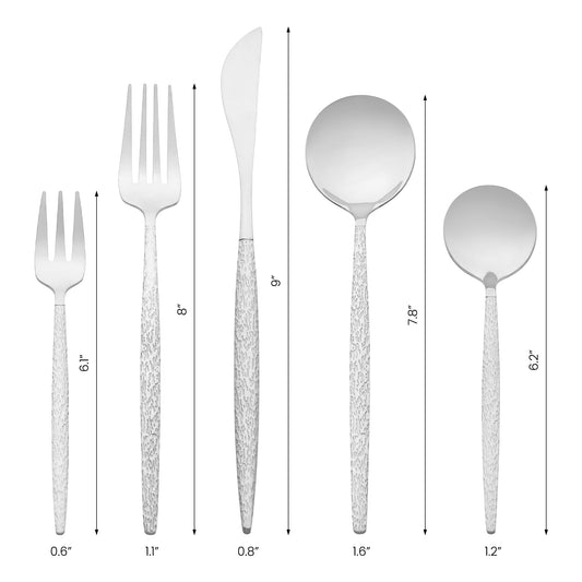 5 Pieces Silverware Set, Stainless Steel Flatware with Knife, Spoons, and Forks Set