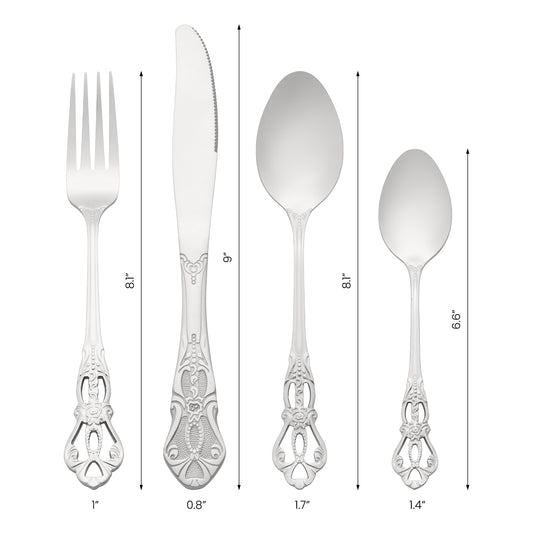 4 Pieces Flatware Set, Stainless Steel Silverware Cutlery Set with Spoons and Forks Set