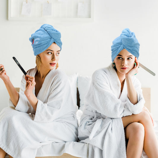 1 Pc Water-absorbent Double Layer Hair Drying Towel for Bathroom Blue, Pink