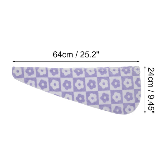 1 Pc Women Soft Checkered Flowers Hair Towel Wrap for Bathroom Purple