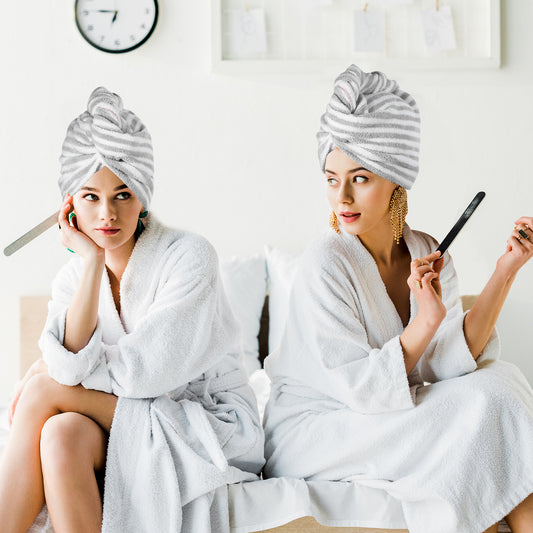3 Pcs Soft Hair Towel Wrap, Microfiber Hair Drying Towel Cap, 9.84x25.59 Inch Gray