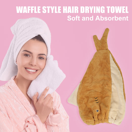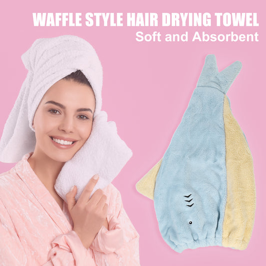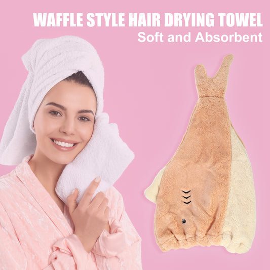 Shark Shaped Cute Hair Drying Towel Absorbent Dry Cap Towel Yellow