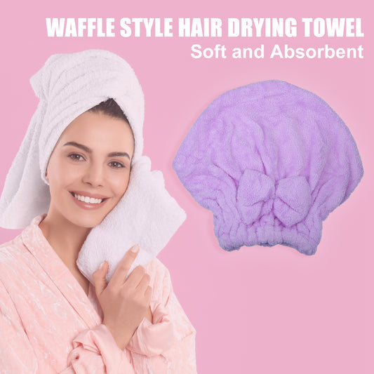 2 Pcs Coral Fleece Hair Drying Towel Dry Cap, Lightweight Strong Absorbent, Purple, Green
