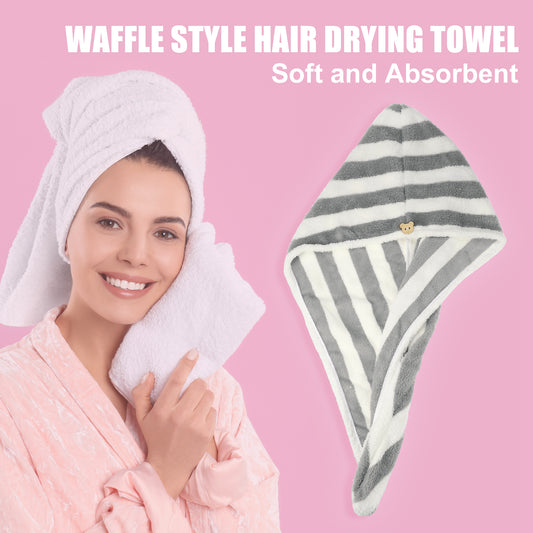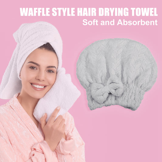 2 Pcs Soft Hair Towel Wrap, Coral Fleece Drying Towel Cap, 9.84x27.56 Inch Gray