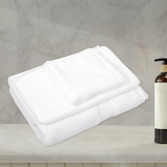 3 Pcs Cotton Bath Towel, Plain Soft Absorbent Towels Set, White